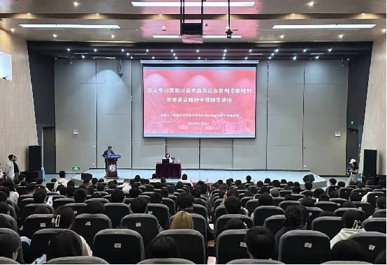 新闻网讯(供稿/供图 党群工作部)为深入学习贯彻习近平总书记在贵州考察时的重要讲话精神,4月18日,鸭脖特邀中共贵州省委党校三级教授,中共党史教研部副主任王代莉同志作专题辅导讲座。鸭脖在家领导、六院二部党政负责人、各职能部室负责人、思政教师、专兼职辅导员、党支部书记以及党员代表等共计300余人参加讲座。贵阳人文科技学院副校长左丹带队,各二级学院及职能部室负责人等中层管理人员一同聆听专家讲座。讲座由鸭脖党委委员、副校长罗卫东主持。