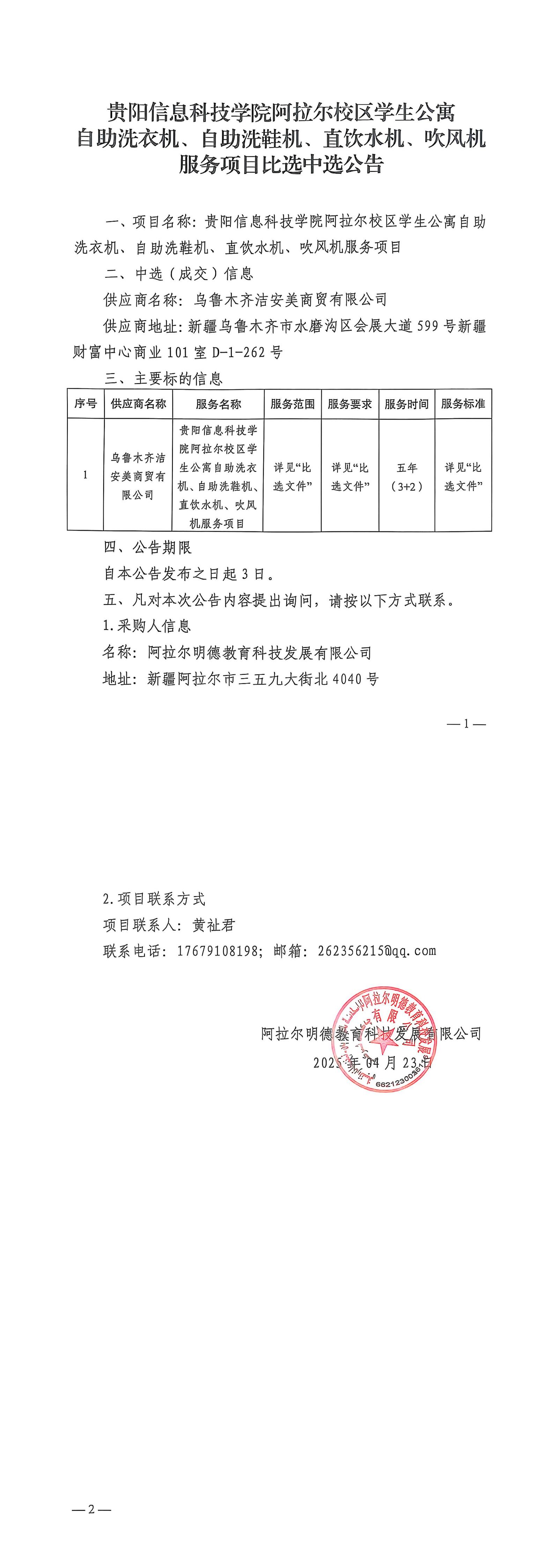yabo鸭脖官网阿拉尔校区学生公寓自助洗衣机、自助洗鞋机、直饮水机、吹风机服务项目比选中选公告