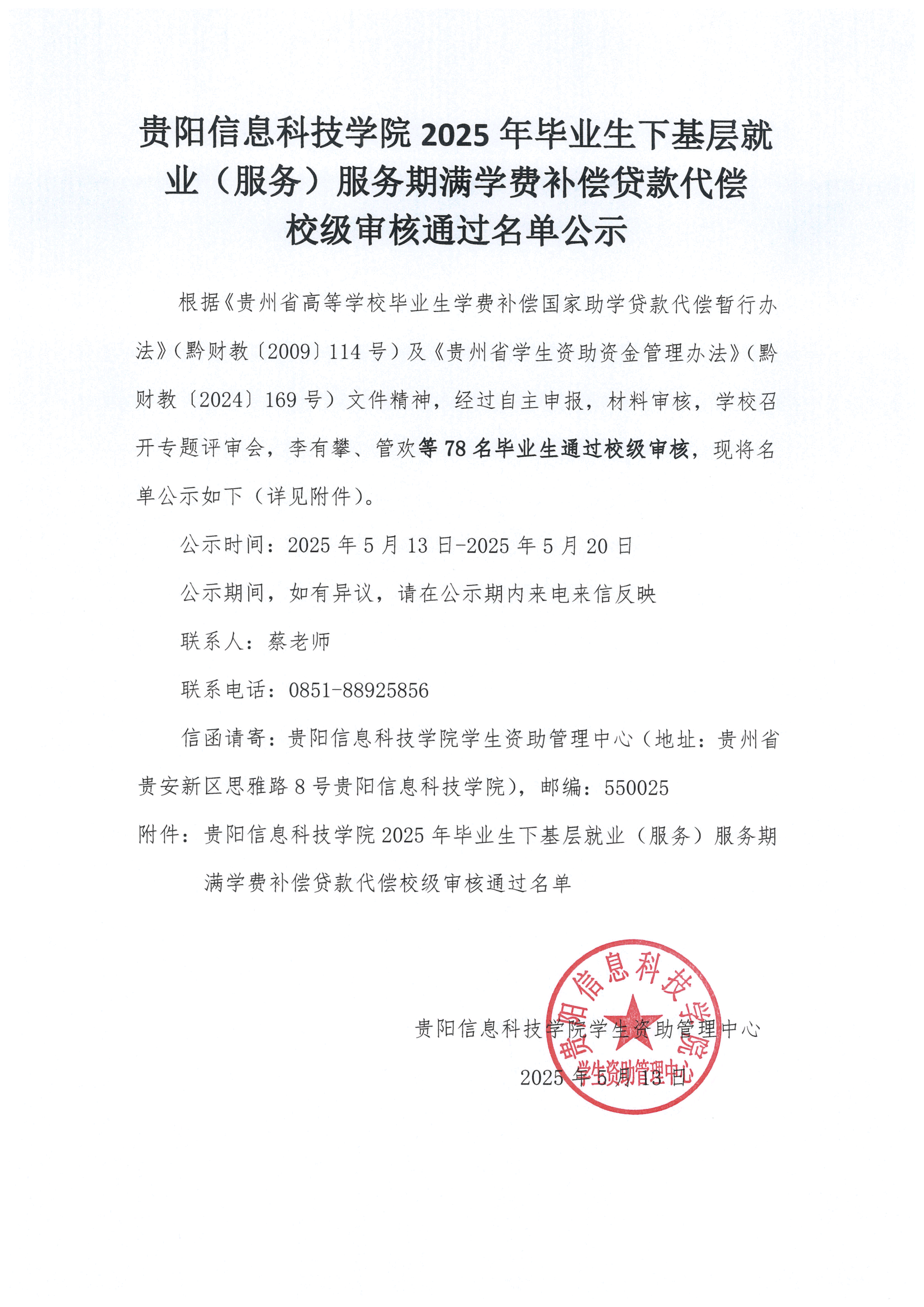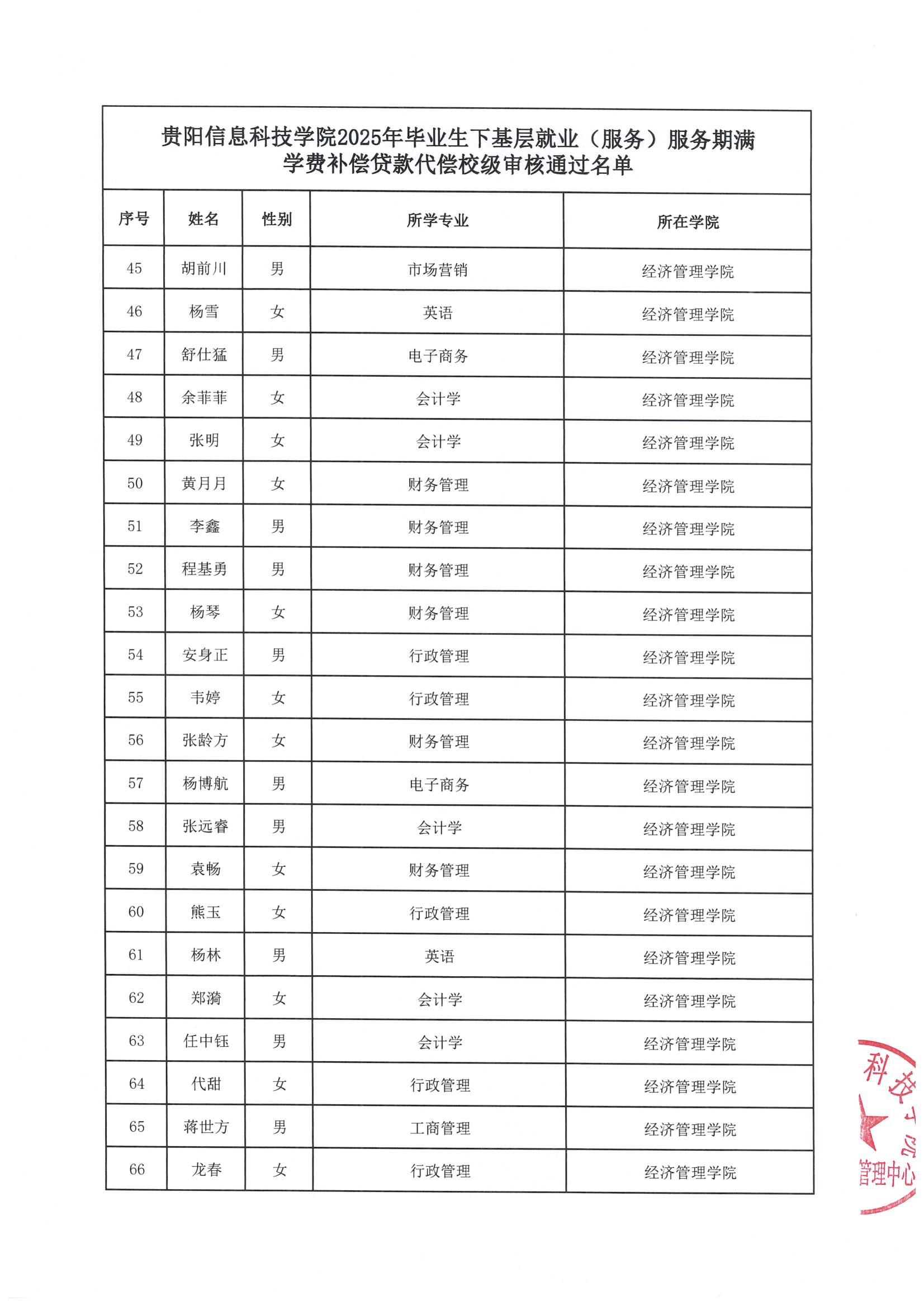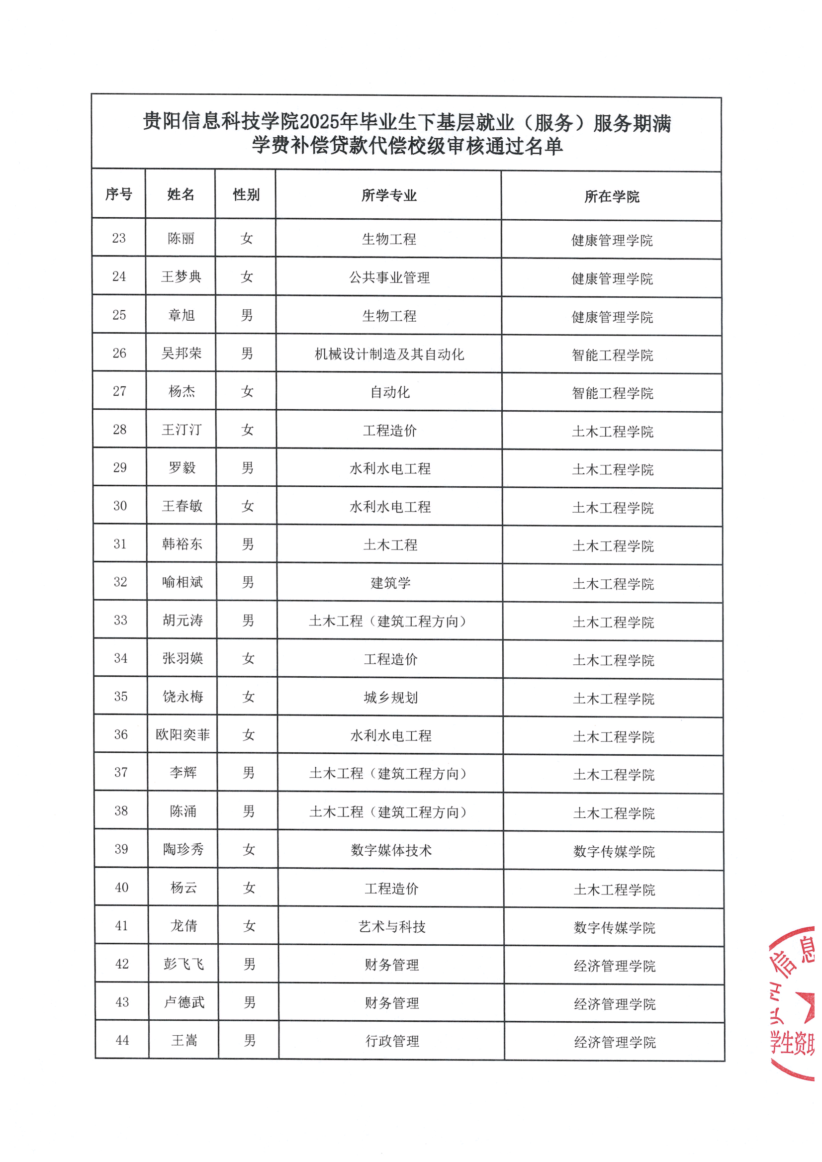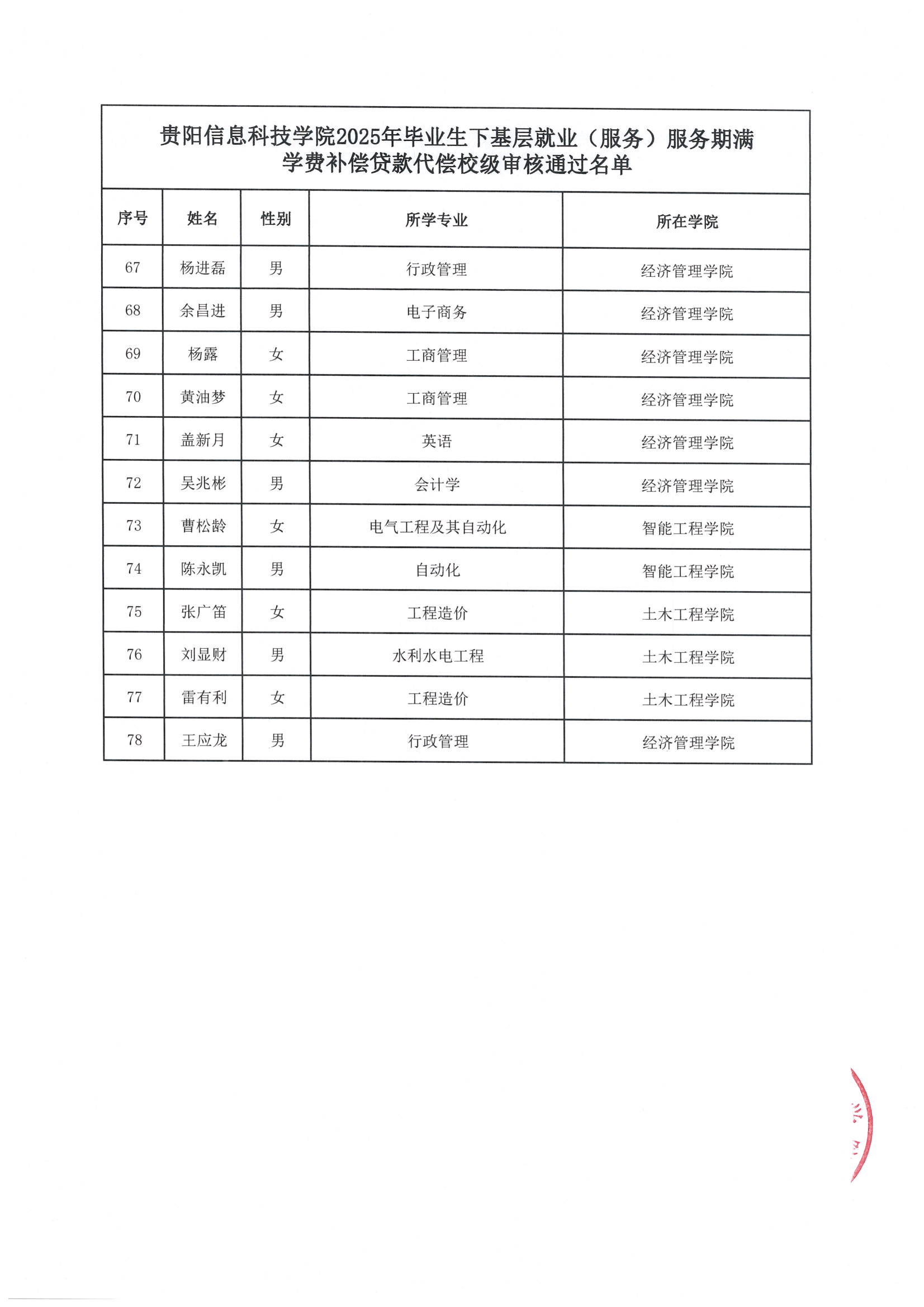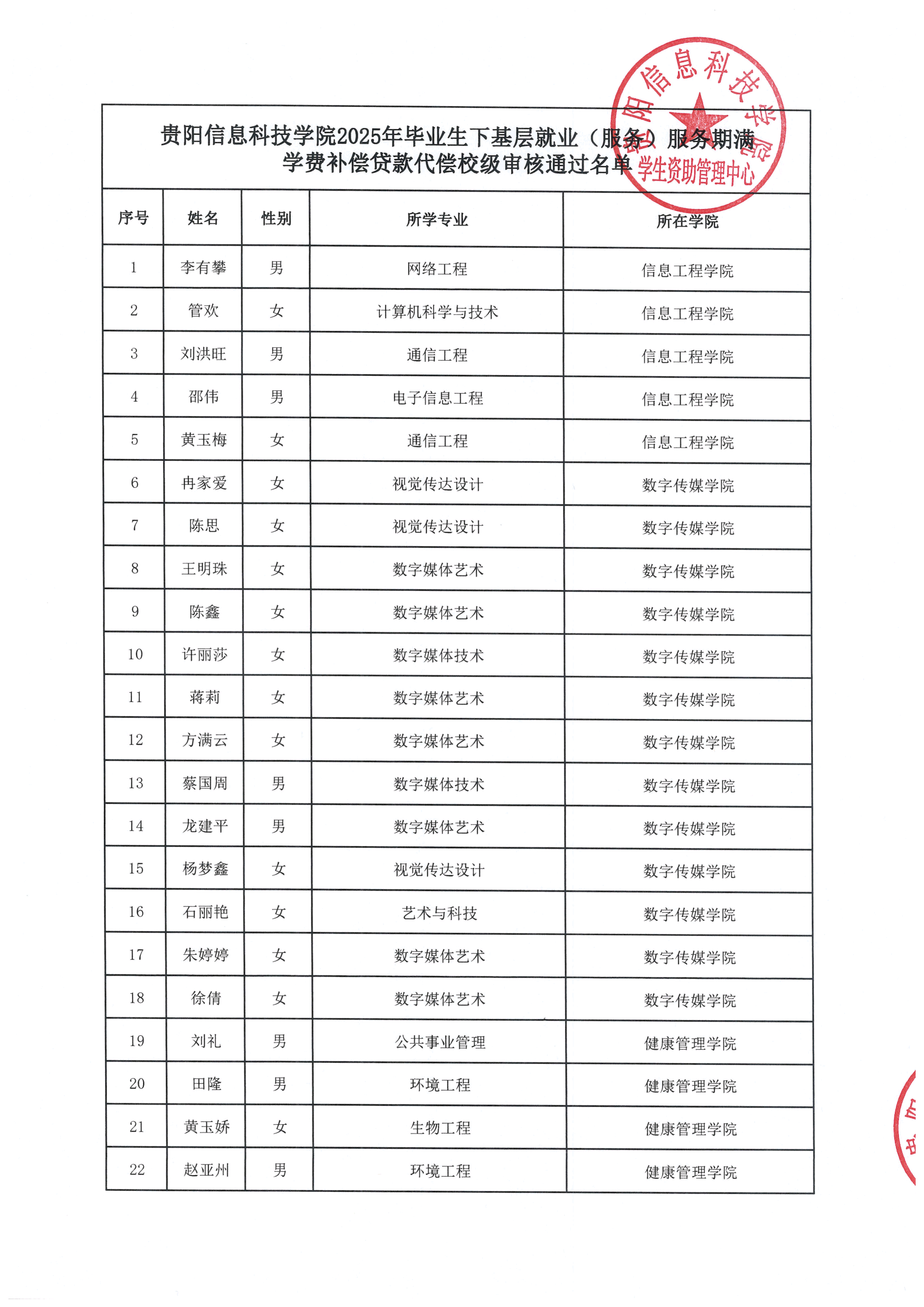 yabo鸭脖官网2025年毕业生下基层就业(服务)服务期满学费补偿贷款代偿校级审核通过名单公示