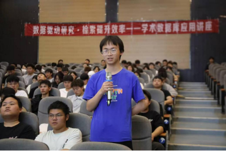 在问答交流环节,现场气氛十分活跃,同学们纷纷举手提问,大家围绕着数据库在日常使用里碰到的各类状况,像检索文献不准确、功能操作不熟悉等向顾老师请教;顾老师逐一耐心回应,用简单易懂的语言把复杂的问题解释清楚。