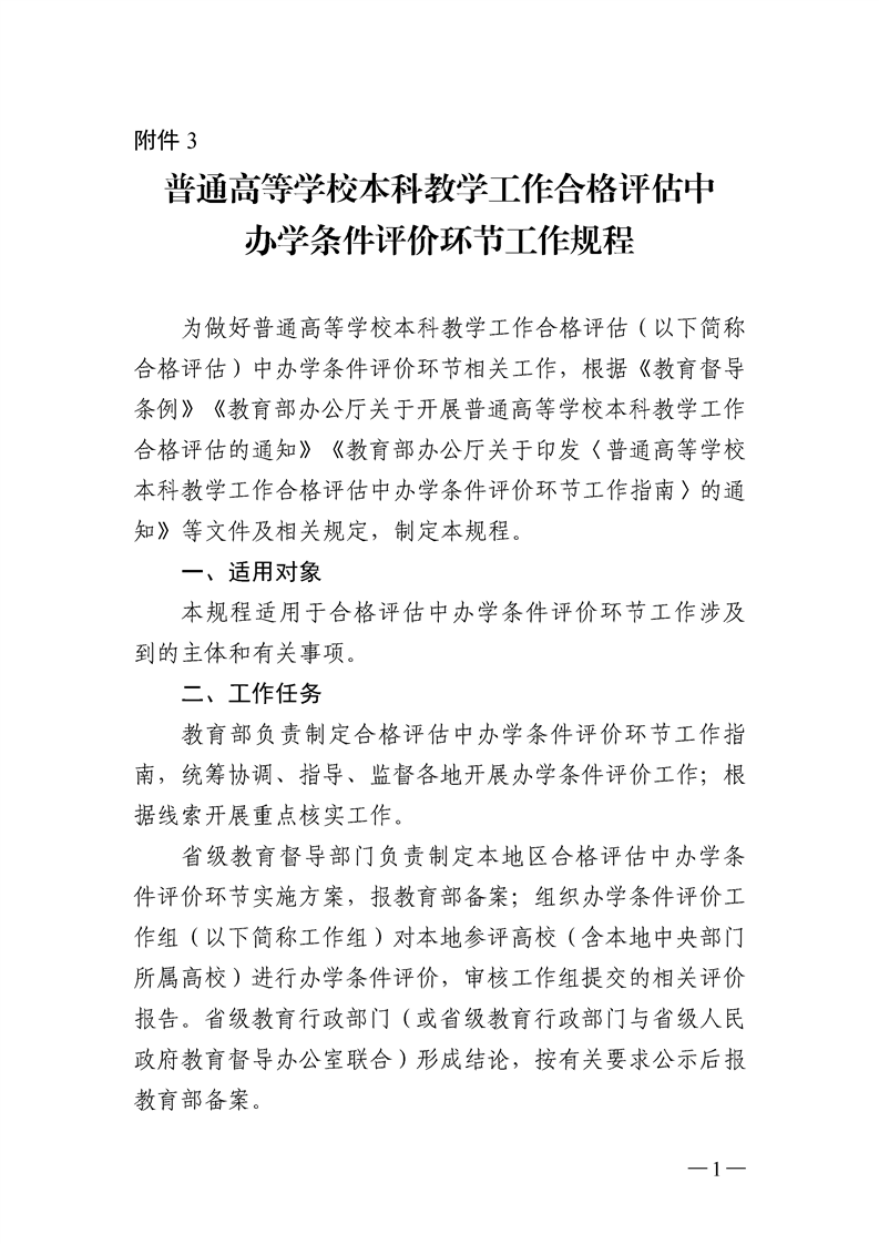 附件3:普通高等学校本科教学工作合格评估中办学条件评价环节工作规程