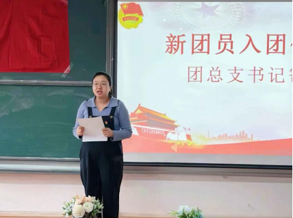 仪式上,新团员代表董苏成登台发言,她眼中闪烁着激动与自豪的光芒。她表示,当团徽别在胸前,庄严宣誓的那一刻,深切感受到了共青团员这一身份的光荣与神圣。“从今天起,我们不仅是父母眼中的孩子,更是肩负使命的共青团员。”她坚定地说,“我们将以团员的标准严格要求自己,在学习中勤奋刻苦,在生活中团结同学,积极参与社会实践,主动承担社会责任。以实际行动践行入团誓言,让青春在为祖国,为人民的奉献中焕发出更加绚丽的光彩!”