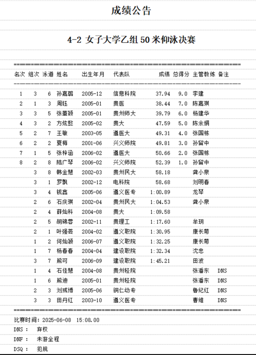 随着闭幕式音乐响起,鸭脖游泳队在贵州省第六届学生运动会的征程画上圆满句号。这群年轻学子用汗水与激情在泳池中书写着青春篇章,也为学校体育事业的高质量发展注入了全新的动力。未来,他们将继续劈波斩浪,向着更高目标奋勇前行!