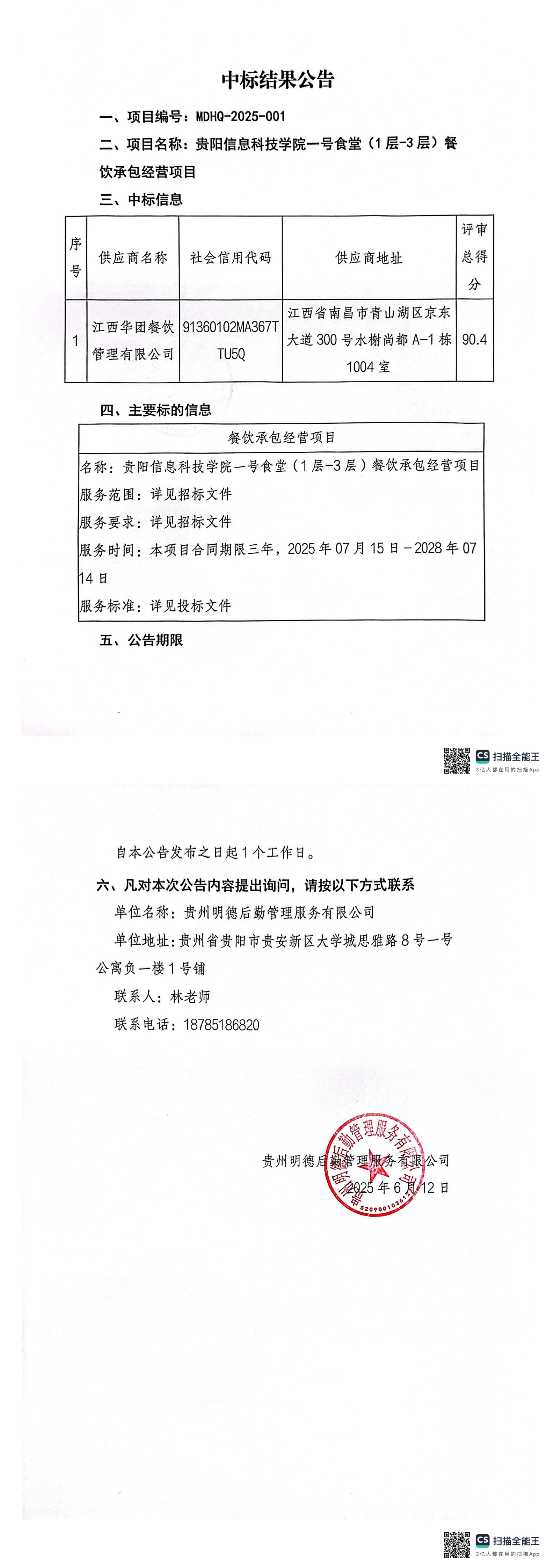 yabo鸭脖官网一号食堂(1层-3层)餐饮承包经营项目中标结果公告