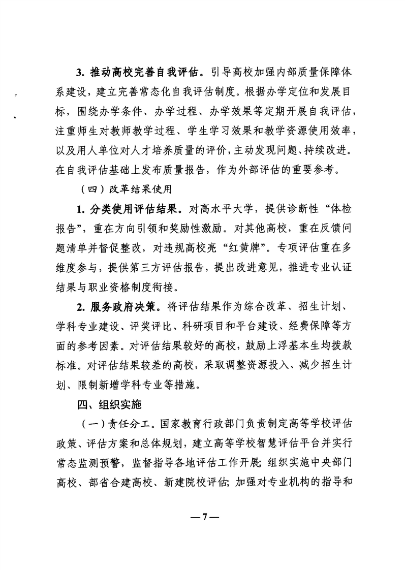 教育部关于印发《关于深化新时代高等学校评估改革方案》的通知