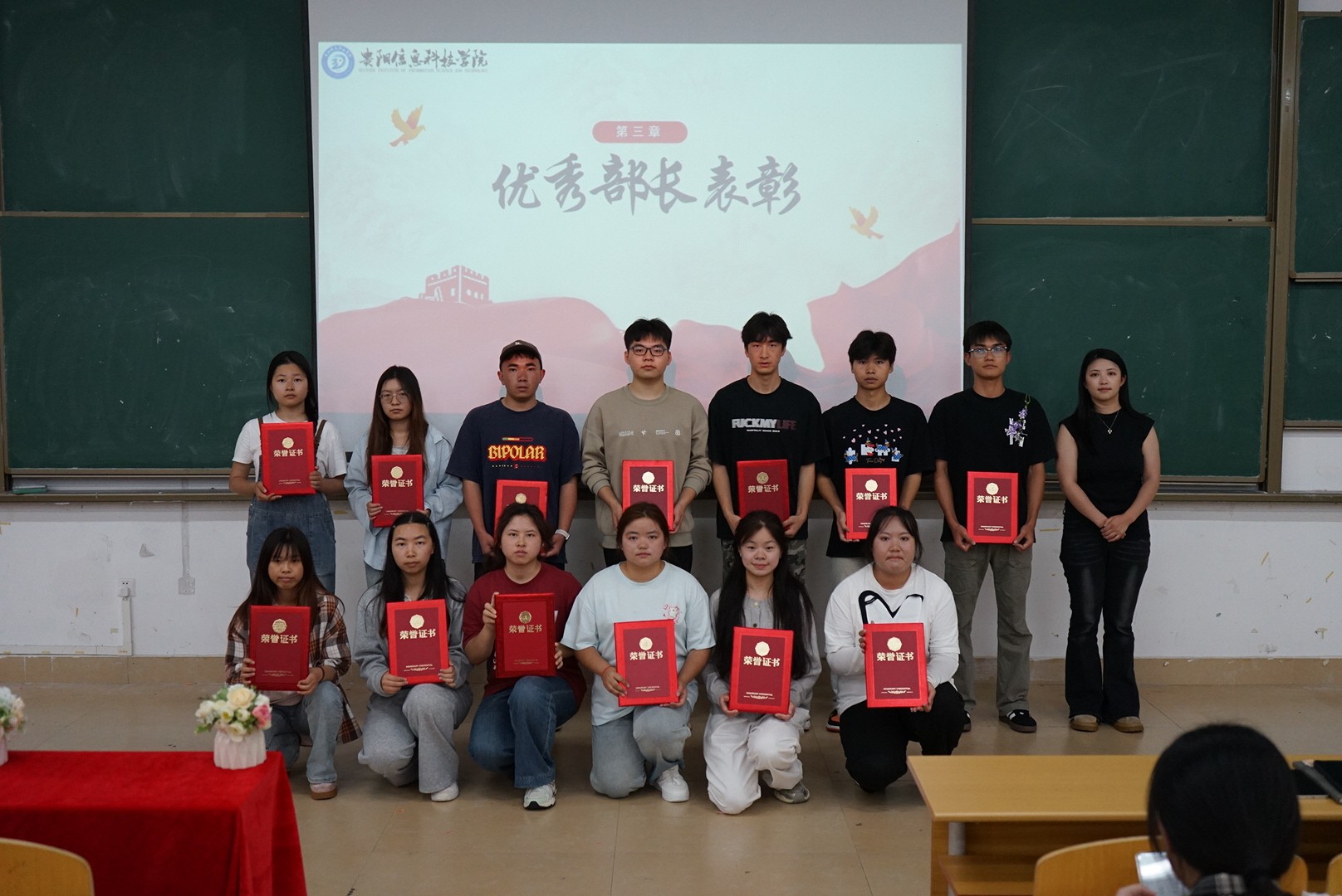 会议最后对2024-2025学年表现突出的集体与个人进行了表彰,分别授予优秀部门、优秀部长、优秀部员、部门之星、最佳优秀奖等荣誉称号。获奖代表以扎实的工作成效和担当精神,为全体学生骨干树立了榜样,彰显了新时代青年的奋斗风采。