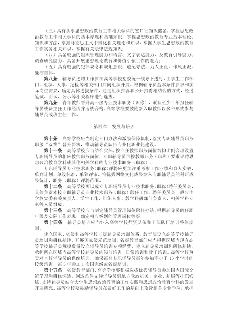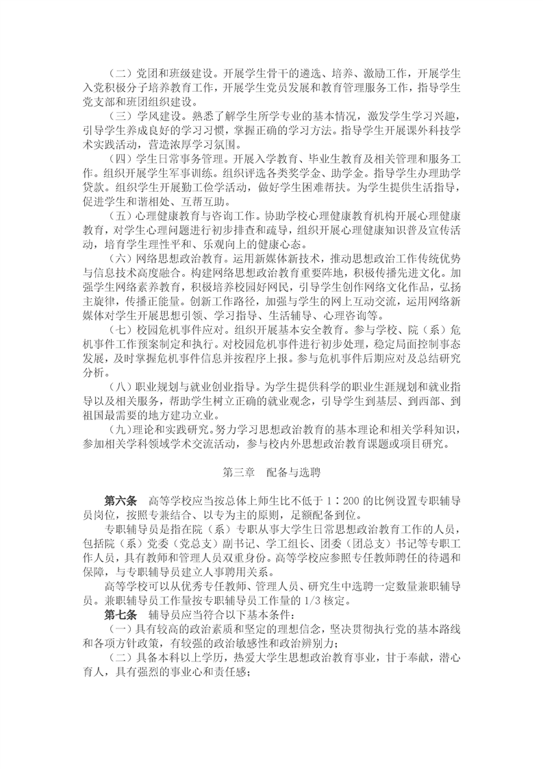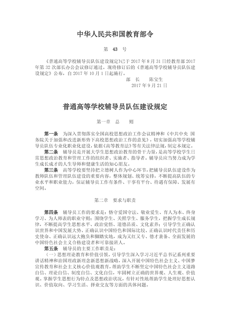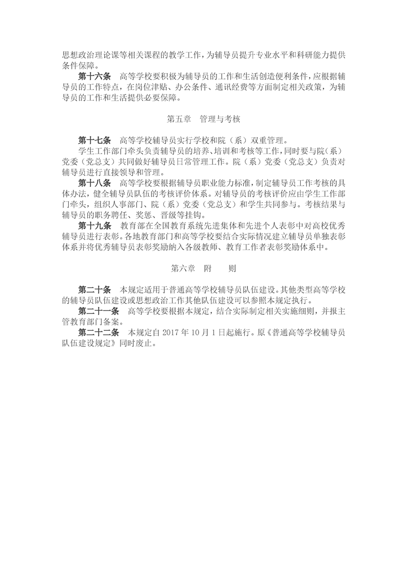 普通高等学校辅导员队伍建设规定