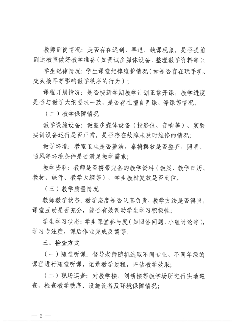 开展2025-2026学年第一学期开学教学运行专项检查的通知