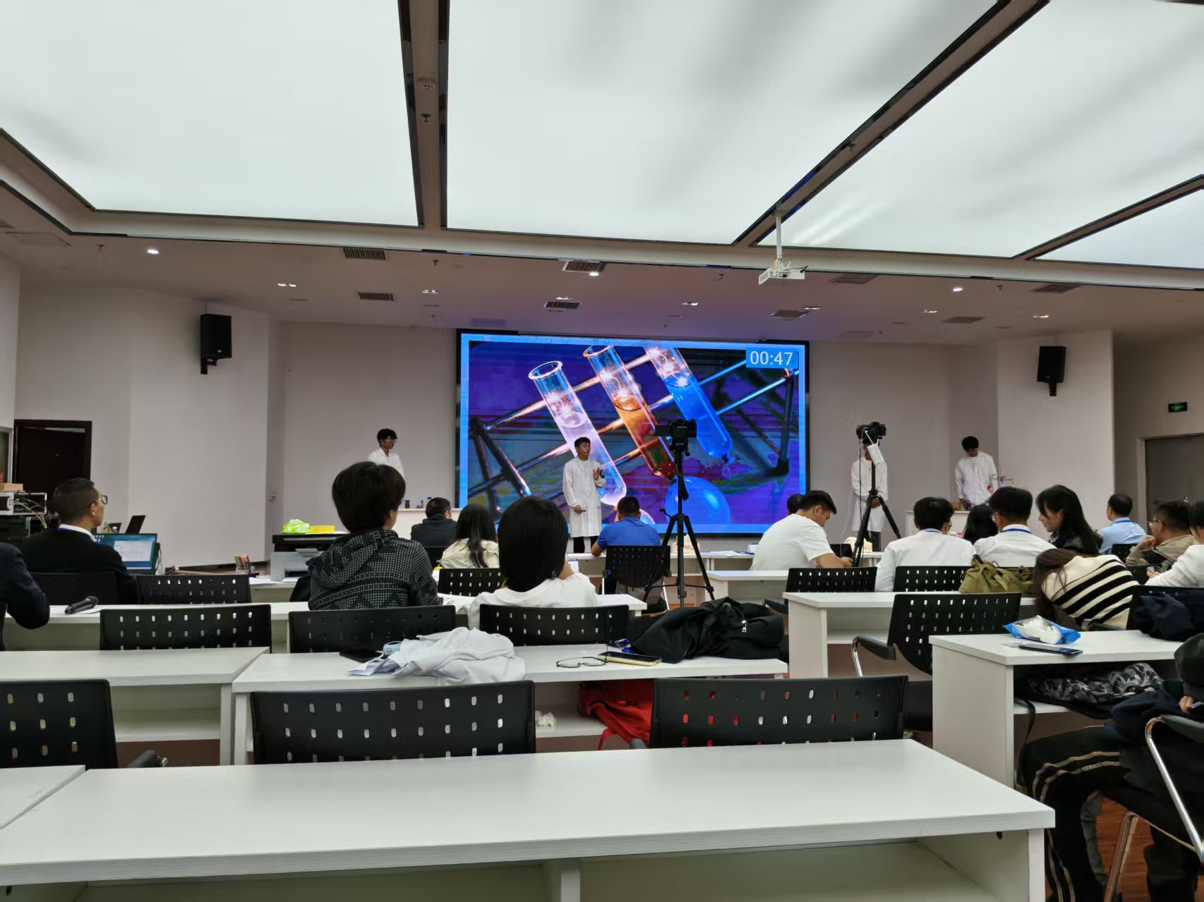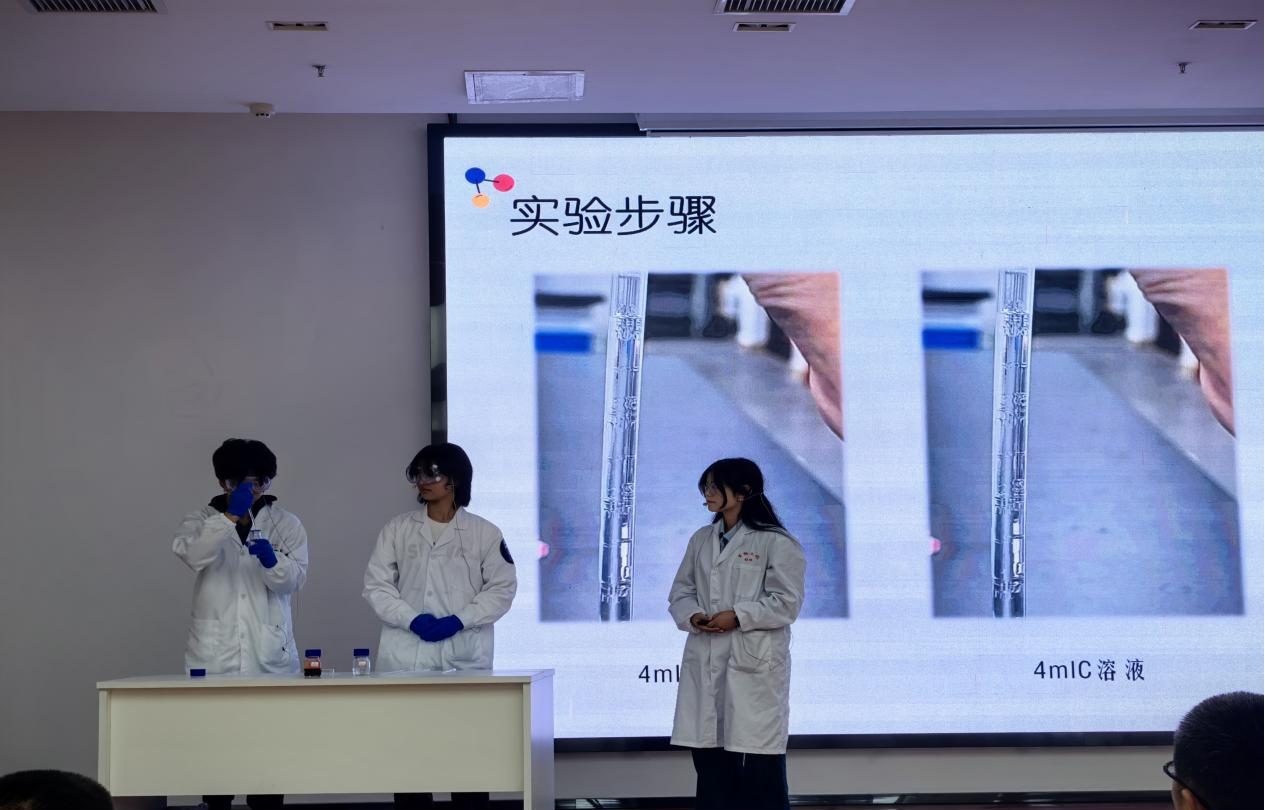 比赛中,面对来自全省的各路强队,鸭脖参赛选手沉着冷静、稳定发挥。在实验展演汇演环节,团队成员运用娴熟的实验操作技能,幽默风趣又不失科学严谨的语言表达,将复杂的科学原理转化为科普作品,生动形象地展示了整个实验过程,赢得了评委和观众的广泛好评。