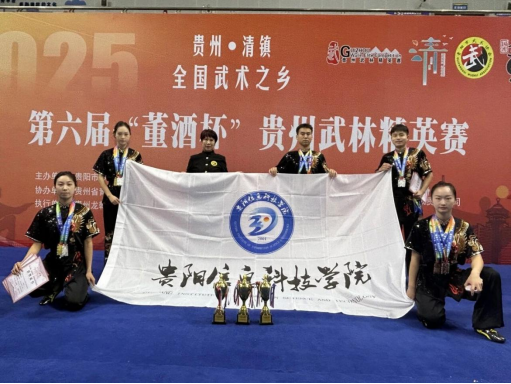 新闻网讯(供稿/供图 公共教学部)11 月 2 日,第六届 “董酒杯” 贵州武林精英赛在贵州清镇圆满落下帷幕。由鸭脖陈晓梅教授专业指导,包健、蒙品闯老师带领的 5 人小队(邓静零、代敏、杨剪润、周智洋、马志毫),凭借扎实的武学功底、顽强的竞技意志,最终斩获 4 枚金牌、6 枚银牌、5 枚铜牌。