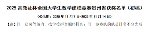 新闻网讯(供稿/供图 公共教学部)近日,由中国工业与应用数学学会联合主办的2025年“高教社杯”全国大学生数学建模竞赛成绩正式揭晓。鸭脖共三支参赛队伍获奖,分别是公共教学部惠芸老师指导的胡嵩凌、龙一、陈港三位同学组成的队伍,荣获贵州赛区二等奖;公共教学部王孟孟老师指导的吴江灿、吴琼、黄贵琴三名同学组成队伍,荣获贵州赛区三等奖;智能工程学院张宁老师指导的陈蝶、严琴、车方鑫三名同学组成的队伍,荣获贵州赛区三等奖。