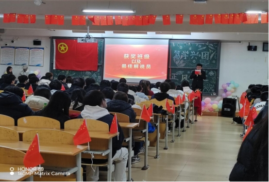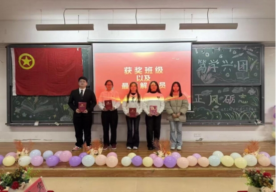 活动尾声,学生会主席邹盈盈给获奖选手们颁发荣誉证书与奖品,同时在“笃学兴团,正风励志”的主题背景前定格下青春与荣耀的瞬间。