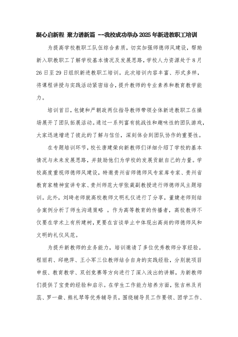 凝心启新程 聚力谱新篇 ——鸭脖成功举办2025年新进教职工培训