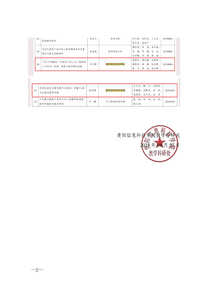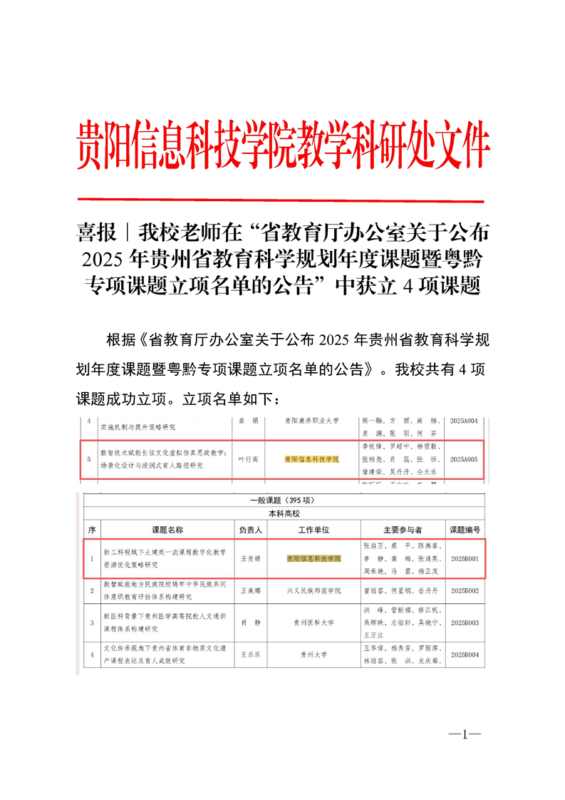 喜报∣鸭脖老师在“省教育厅办公室关于公布2025年贵州省教育科学规划年度课题暨粤黔专项课题立项名单的公告”中获立4项课题