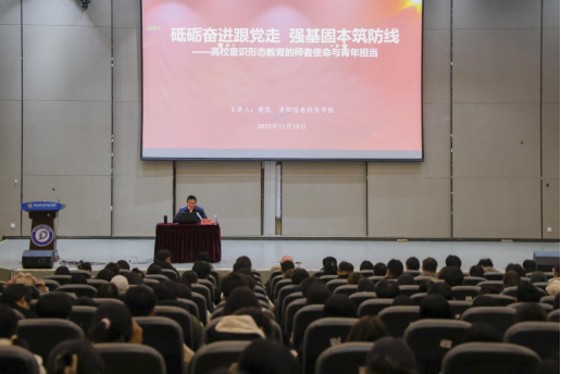 新闻网讯(供稿/供图 党群工作部)为深入学习贯彻习近平总书记关于意识形态工作的重要论述,切实巩固学校意识形态阵地,明确新时代高校教师的育人使命与青年学子的责任担当,11月19日中午,学校党委副书记詹凯在图书馆报告厅作题为《砥砺奋进跟党走 强基固本筑防线 高校意识形态教育的师者使命与青年担当》的专题讲座,学校党群工作部、学生工作处、团委、各学院党总支书记、支部书记、团总支书记以及第六期入党积极分子、“贵科菁英”学生骨干培训第一期第一课共计300余人共同参与。