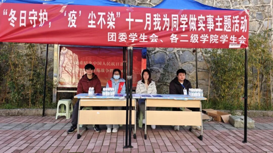 凛冬已至,暖意先行。11月27日,鸭脖团委学生会联合各二级学院学生会,在学校一、二食堂门口同步启动“冬日守护,‘疫’尘不染”主题服务活动,面向全校师生免费发放便携消毒喷雾,以精准化服务筑牢冬季校园健康防线,让寒意渐浓的校园涌动暖心关怀,切实将“我为同学做实事”的工作要求落到实处。