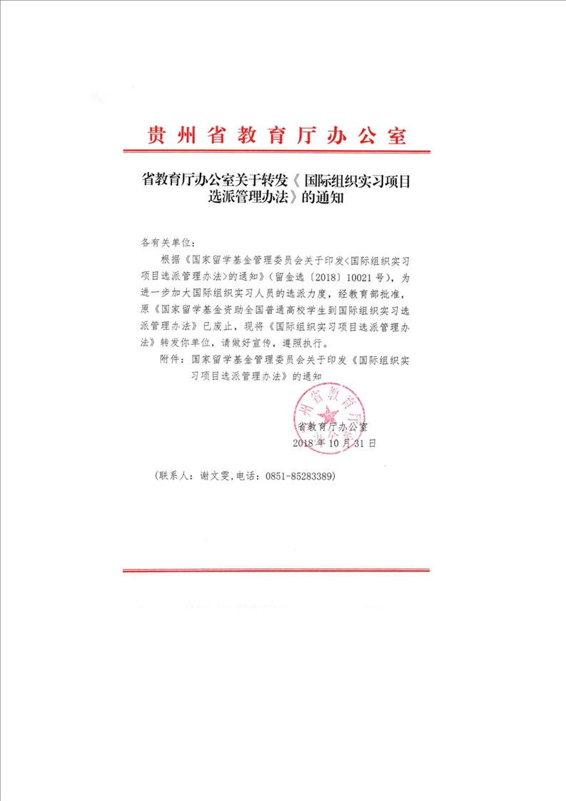 省教育厅办公室关于转发《国际组织实习项目选派管理办法》的通知