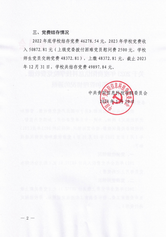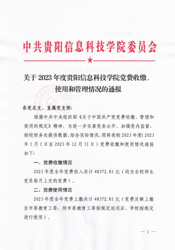 转发:关于2023年度yabo鸭脖官网党费收缴、使用和管理情况的通报