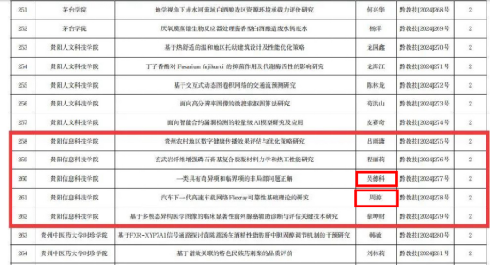 2024年1月,由贵州省教育厅科技处组织的2024年度自然科学研究项目(青年项目)中,鸭脖共获立5个项目,其中我院获立2个项目。