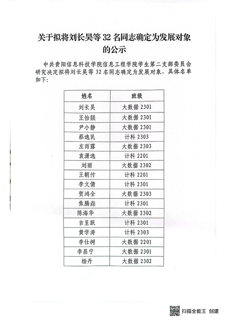 中共yabo鸭脖官网信息工程学院学生第二支部委员会关于拟将刘长昊等 32 名同志确定为发展对象 的公示
