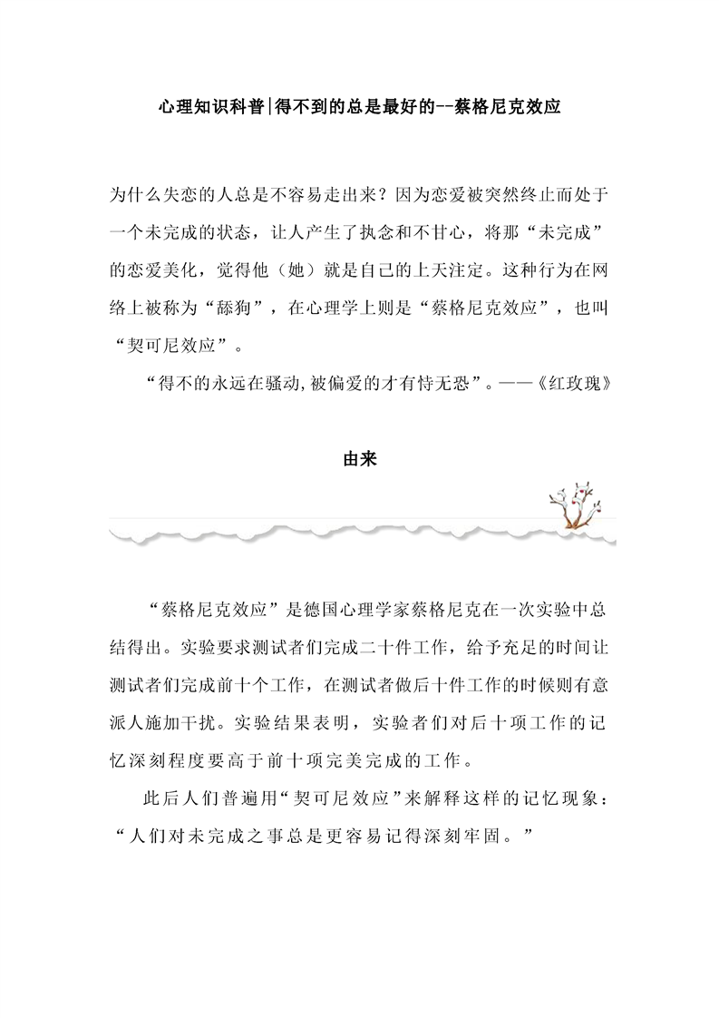 心理知识科普—得不到的总是最好的 蔡格尼克效应