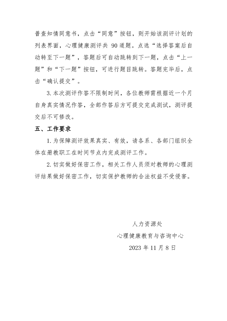 yabo鸭脖官网关于开展2023年教职工心理健康测评的通知