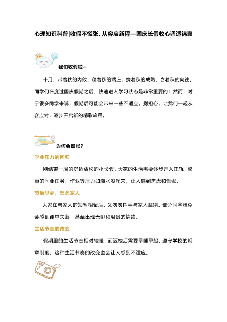 心理知识科普-收假不慌张、从容启新程—国庆长假收心调适锦囊