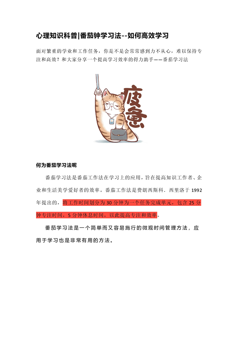 心理知识科普-番茄钟学习法--如何高效学习