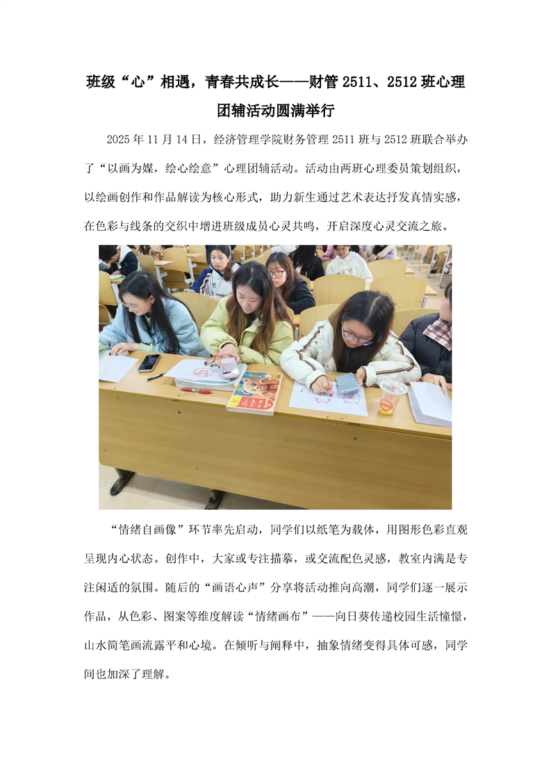 班级“心”相遇,青春共成长——财管2511、2512班心理团辅活动圆满举行