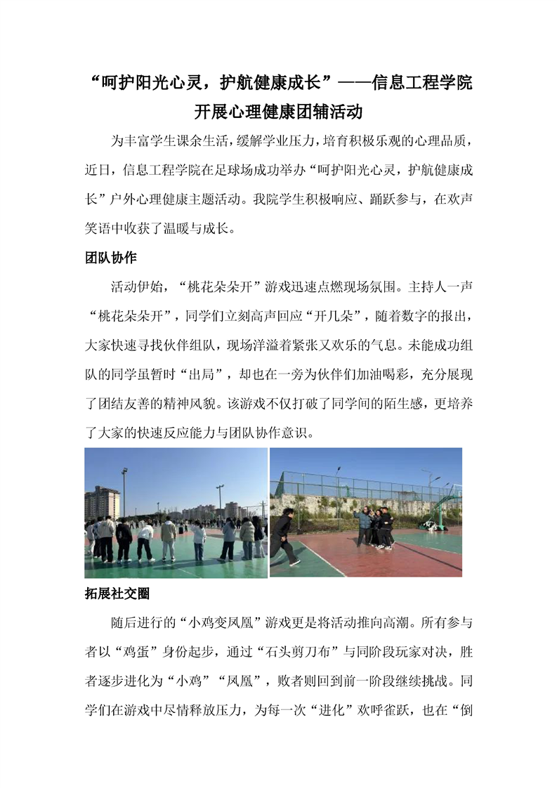 “呵护阳光心灵,护航健康成长”——信息工程学院开展心理健康团辅活动