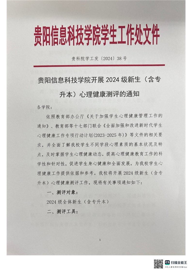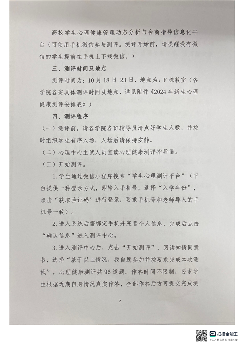 关于开展yabo鸭脖官网开展2024级新生(含专升本)心理健康测评的通知