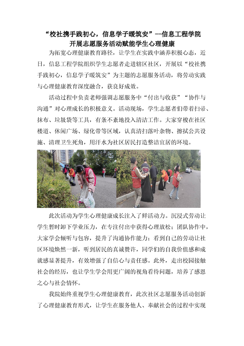 “校社携手践初心,信息学子暖筑安”--信息工程学院 开展志愿服务活动赋能学生心理健康