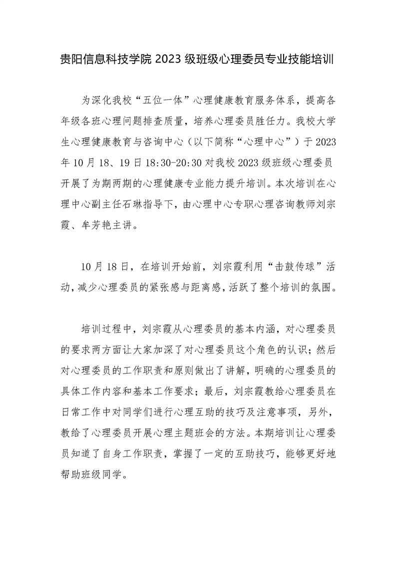 yabo鸭脖官网2023级班级心理委员专业技能培训