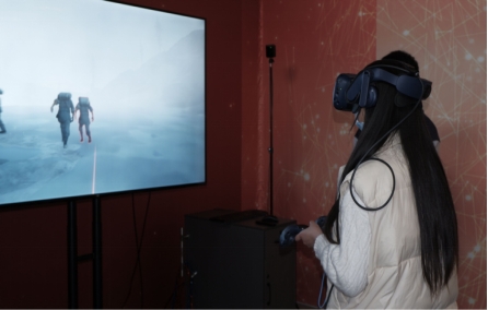 在走过党史展示区与学院展示区后,全体师生党员共同步入党建馆内的VR体验区,通过VR技术“穿越”时空走近革命先烈,通过实景感悟革命前辈的理想信念与崇高信仰,体悟革命前辈战胜困难、取得胜利的法宝和经验。