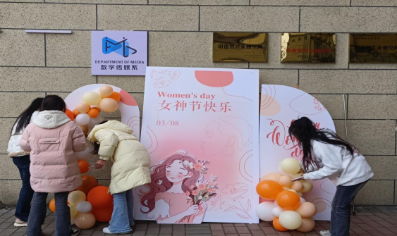活动开始前,我系学生利用课余时间积极参与到线下活动现场的布置中。从kt板的搭设到气球形态的设定,再到抽奖环节的设计以及抽奖礼品的摆放等等,每一处细节都为活动的开始增添了许多氛围及期待。同时,线上的宣传平台也发布相关的活动预告,积极传递数字传媒系对于广大女性的关爱和祝福,从而营造浓厚的节日气氛。
