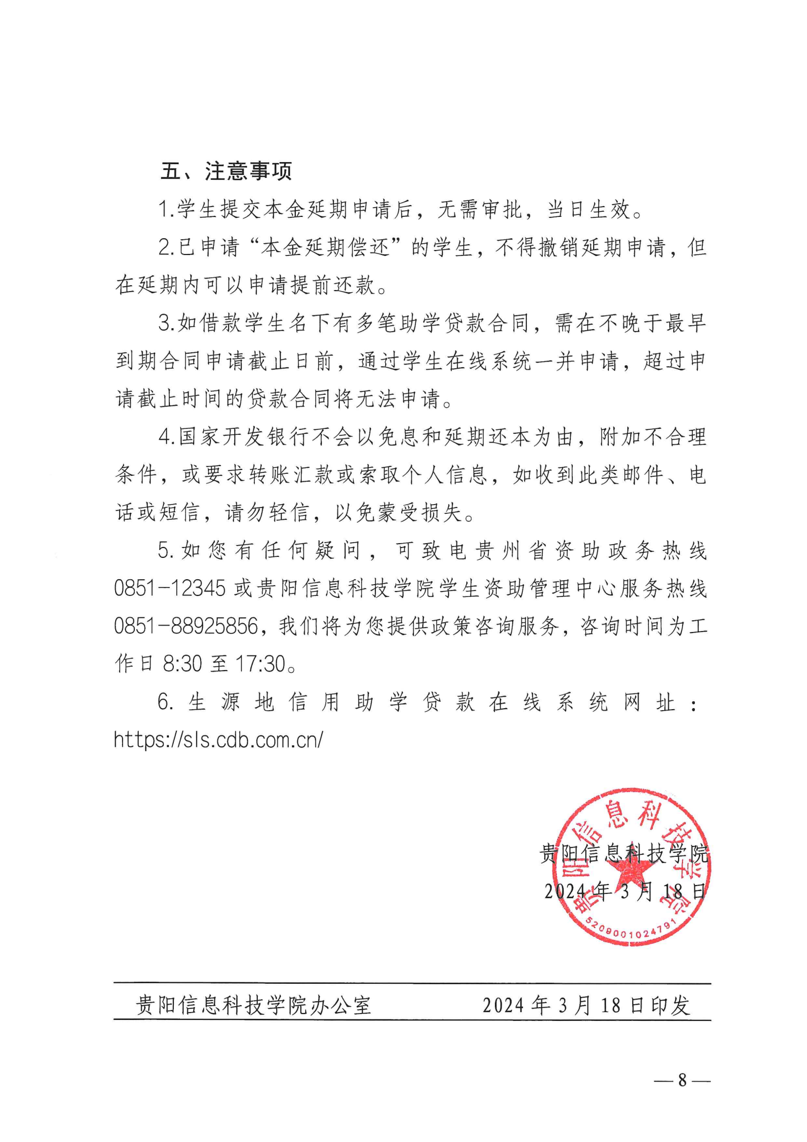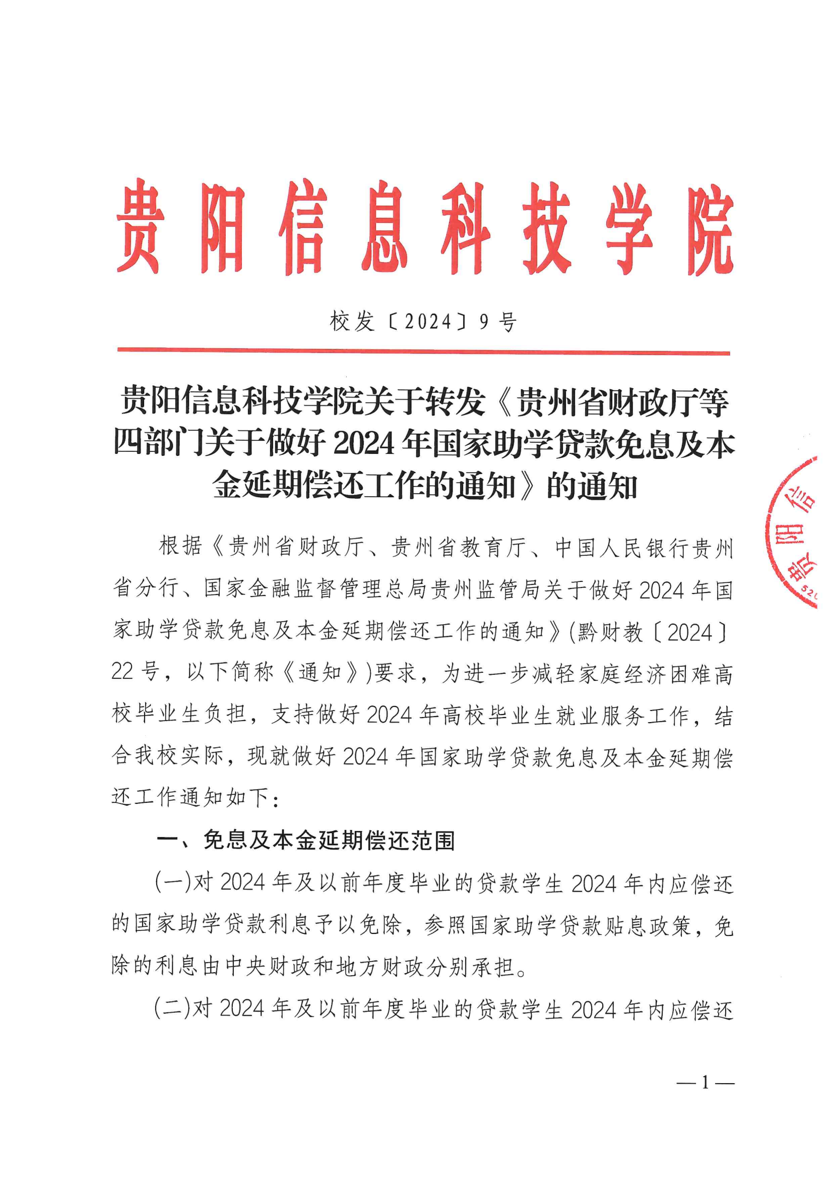 校发〔2024〕9号-yabo鸭脖官网关于转发《贵州省财政厅等四部门关于做好2024年国家助学贷款免息及本金延期偿还工作的通知》的通知