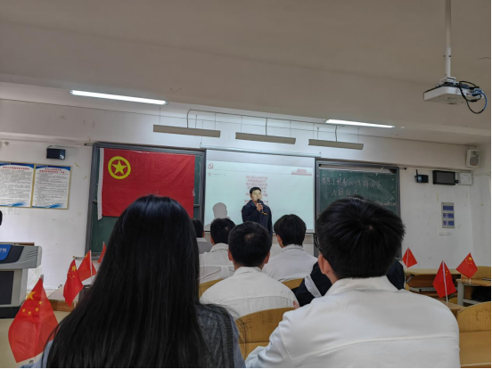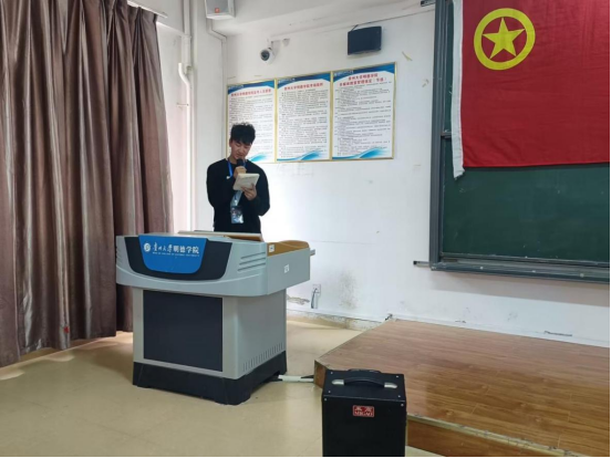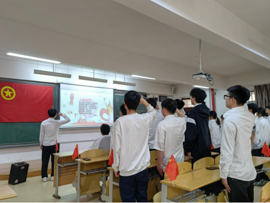 信息工程系团总支学生会组织部负责人贺绍贤宣读入团成员名单,团总支学生会负责人杨倩为新团员佩戴团徽,怀着对共青团的向往与崇敬,新团员们在鲜艳的团旗下庄严领誓:“我志愿加入中国共产主义青年团,坚决拥护中国共产党的领导……”一声声铿锵有力的誓言在教室内回荡,诠释着新团员的使命和担当,握紧的右拳,表明了团员们坚定的信念和决心。