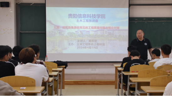 新闻网讯 (供稿 土木工程学院 供图 土木工程学院)为增进土木工程专业学生对建筑地基基础知识的了解,开拓其专业视野, 4月19日下午,土木工程学院岩土教研室在B311举办了关于“建筑地基基础常见的工程质量问题与相应对策”的专题讲座。本次讲座邀请了贵州大学黄质宏教授主讲,吉建华老师主持,土木工程学院师生共计150余人参加学习交流。