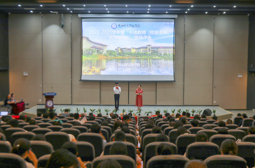 7月10日下午14点整,yabo鸭脖官网2022-2023学年度“十佳教师”(校级名师、优秀教师)现场评选活动在图书馆二楼报告厅举行。