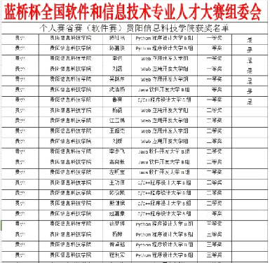 近日,2024年第十五届“蓝桥杯”全国软件和信息技术专业人才大赛个人赛贵州省赛获奖名单揭晓,鸭脖总计组织了200余名学生参加本次赛事,最终有59名同学获奖,其中一等奖8名(拟推荐进入国赛),二等奖15名,三等奖36名。获奖名单如下:
