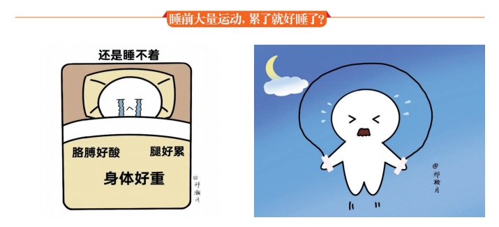 到了小高该睡觉的时间,他专心致志地躺在了床上,等待着入睡。但很快,小高就感受到了一些不对劲:他的心率似乎并没有减慢太多,依旧在他的胸膛里“砰砰砰”地跳着,自己的情绪似乎也并不是即将入睡前的平静,还保留着一些运动时的躁动。“这是怎么回事?难道睡前运动还有碍于睡眠吗?”小高百思不得其解。