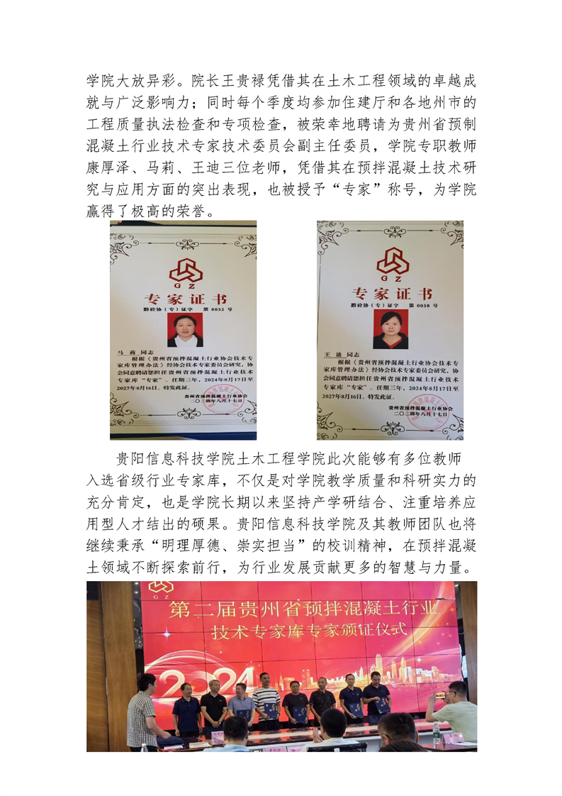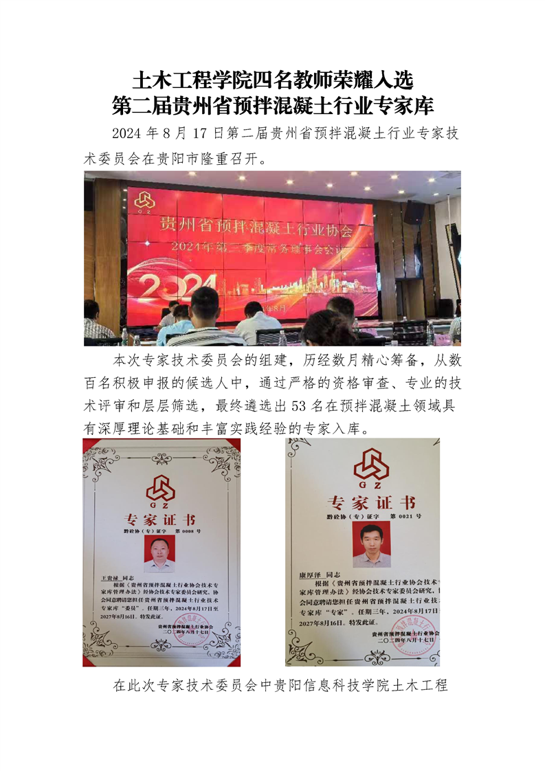 土木工程学院四名教师荣耀入选第二届贵州省预拌混凝土行业专家库