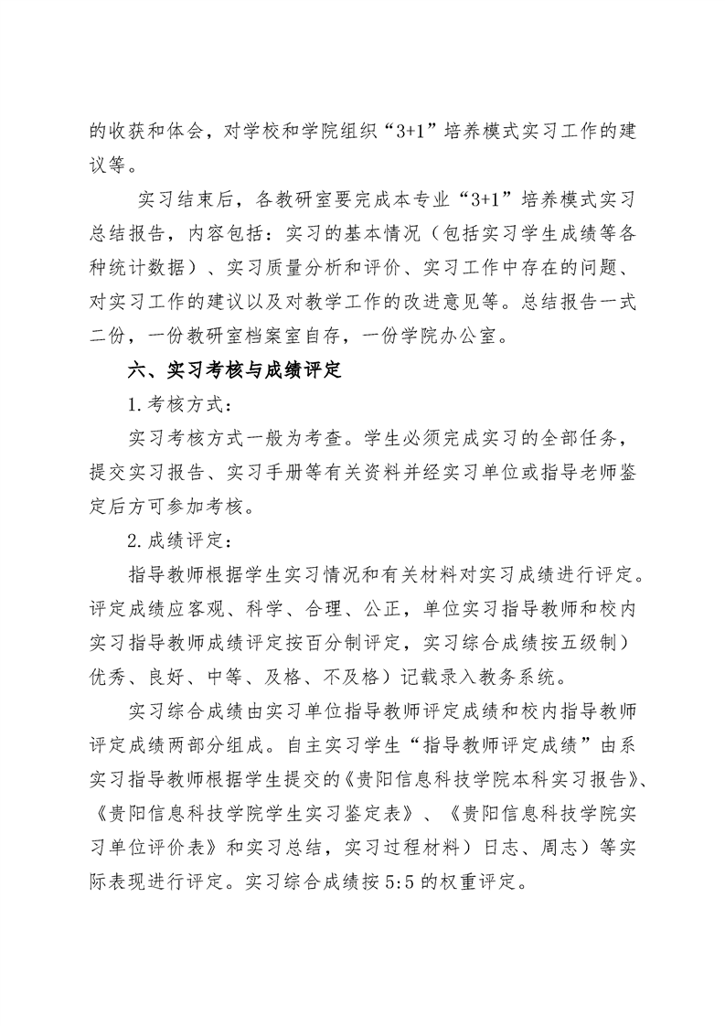 土木工程学院“3+1”培养模式实习教学 管理实施细则
