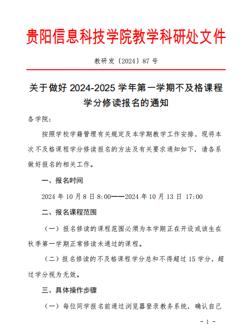 关于做好 2024-2025 学年第一学期不及格课程学分修读报名的通知