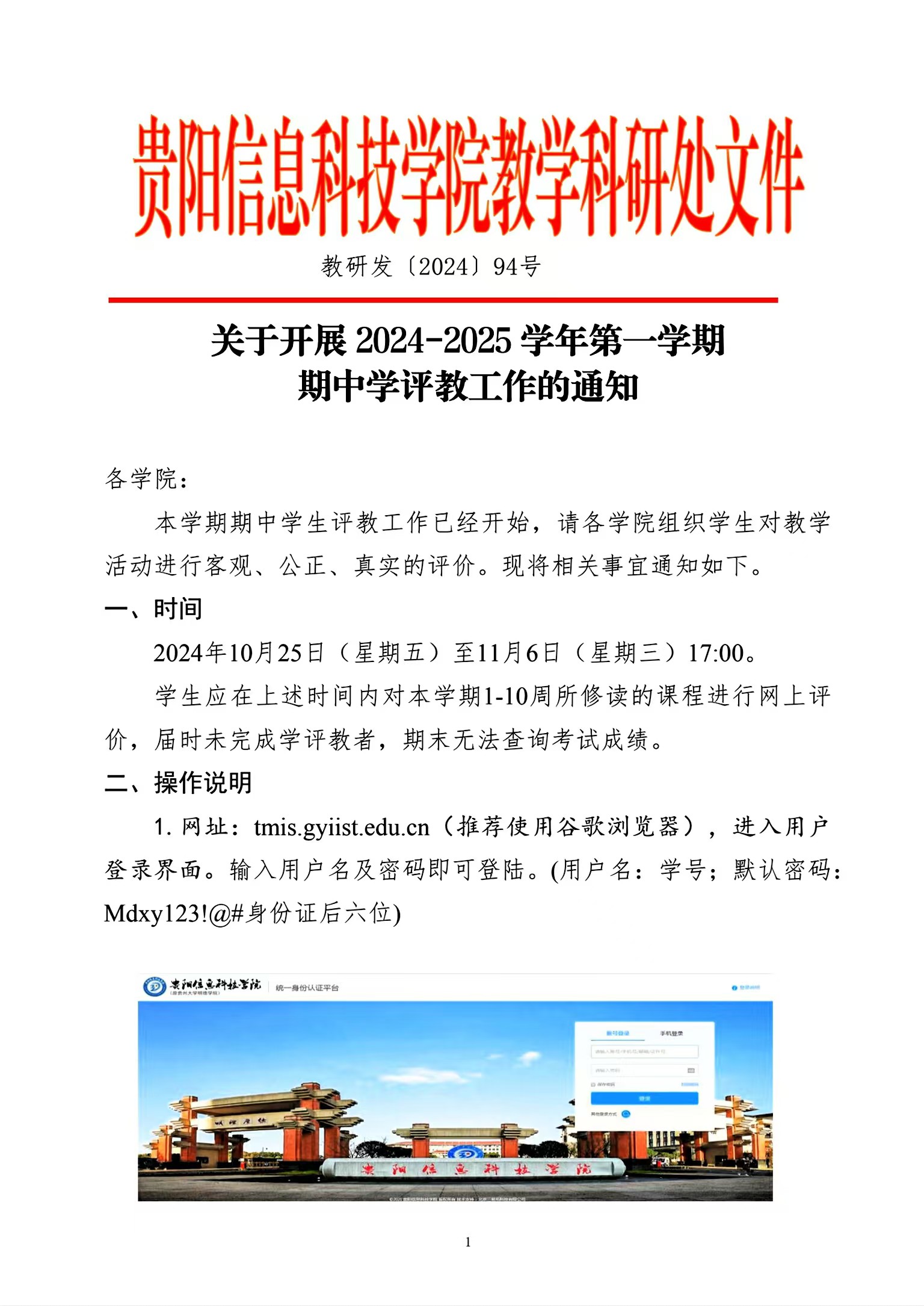 关于开展2024-2025学年第一学期期中学评教工作的通知