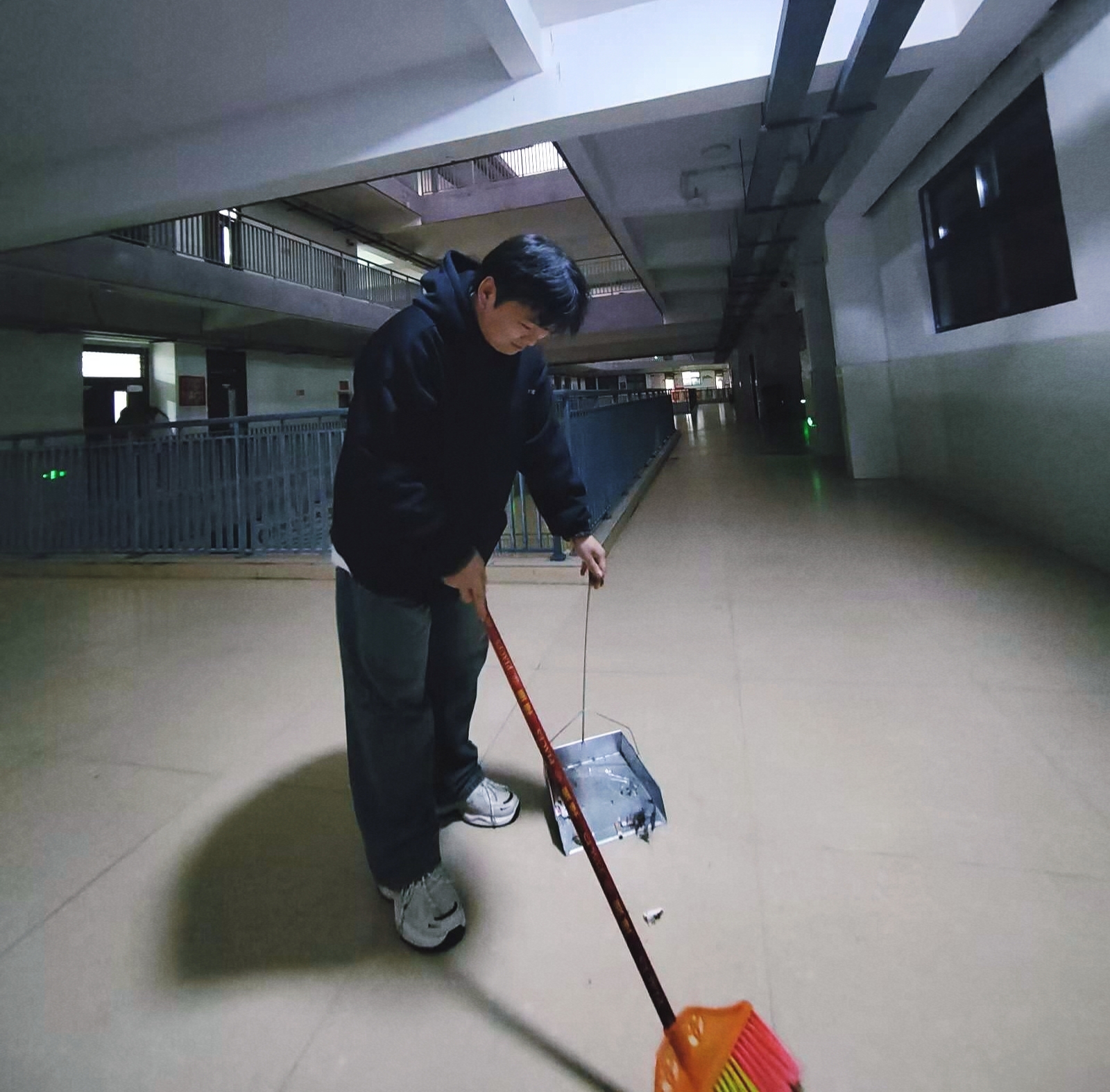 活动现场,党员同志们以身作则,率先垂范,用汗水浇灌文明之花。他们的劳动热情迅速点燃了周围同学,吸引了更多学子加入这场“绿色净扫”行动。同学们在走廊上尽情挥舞扫帚,楼梯间弯腰俯身拾起垃圾,每一个身影都成了校园中最美的风景线。在他们的共同努力下,经管教学楼焕然一新,仿佛被绿色魔法点亮,绽放出前所未有的生机与活力。