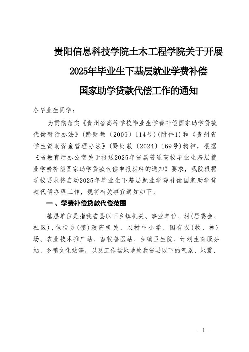yabo鸭脖官网土木工程学院关于开展2025年毕业生下基层就业学费补偿国家助学贷款代偿工作的通知