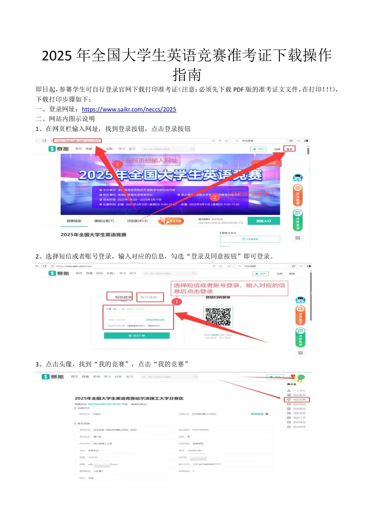 关于 2025 年全国大学生英语竞赛准考证打印的通知