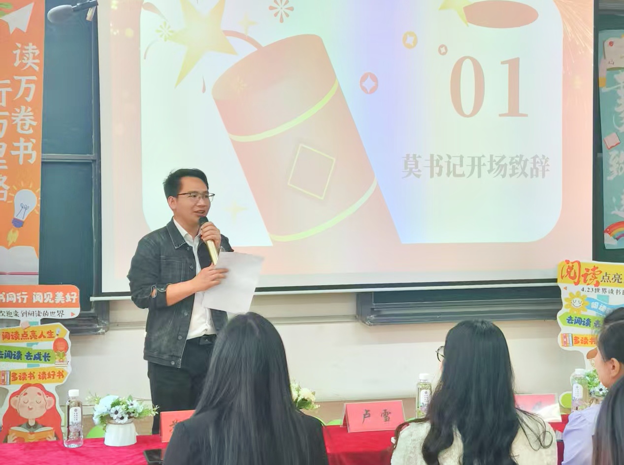 新闻网讯(供稿/供图 经济管理学院阅览室助理)2025年5月12日,经济管理学院在C栋211教室隆重举行“阅读春日来信,21天阅读打卡活动”总结表彰大会。学校图书馆办公室副主任何正直,刘娟老师出席活动,学院党总支书记莫建活、学工办主任郭东越及师生代表100余人齐聚一堂,共赴这场精神盛宴,见证文学在时光里绽放的力量。