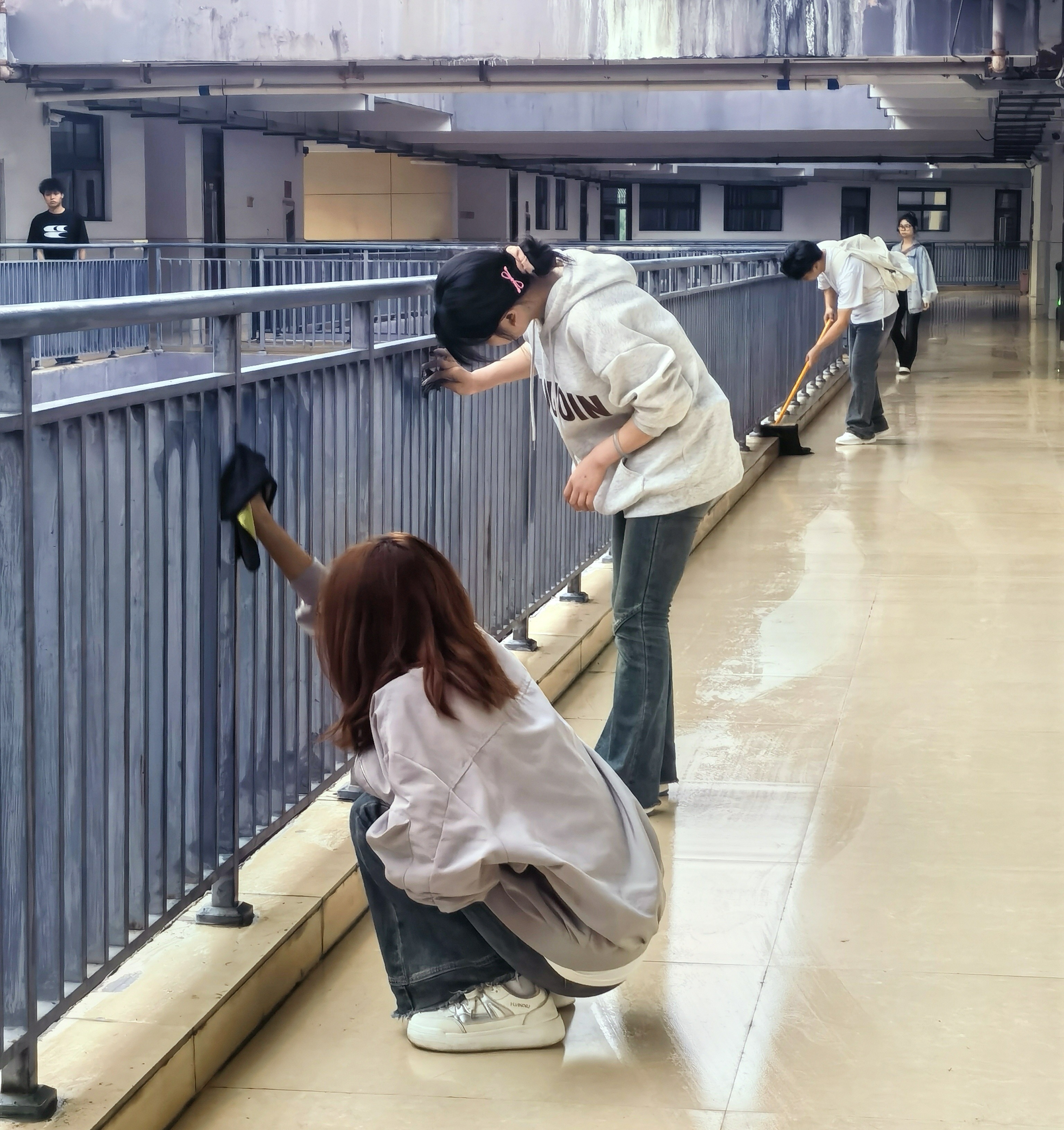 活动中,党员志愿者们手持扫帚、垃圾夹、垃圾袋等工具,分工协作,对B栋周边的道路、绿化带、卫生死角等进行了全面清理。大家热情高涨,不怕脏、不怕累,认真捡拾烟头、纸屑、塑料瓶等垃圾,并分类投放。经过两个小时的辛勤劳动,教学楼环境焕然一新,赢得了同学们的一致好评。